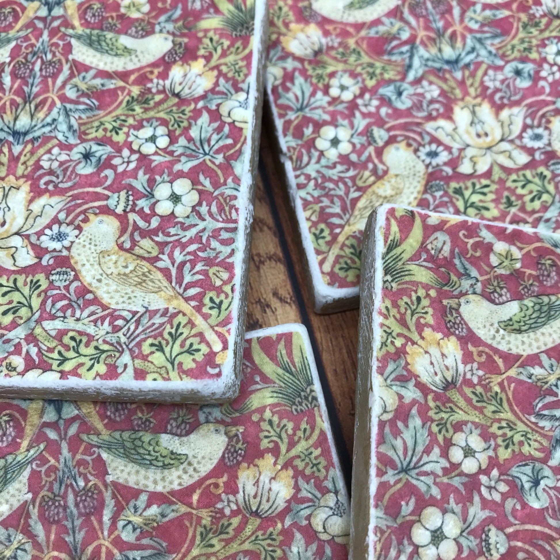 William Morris Natural Stone Coasters - Wine Red